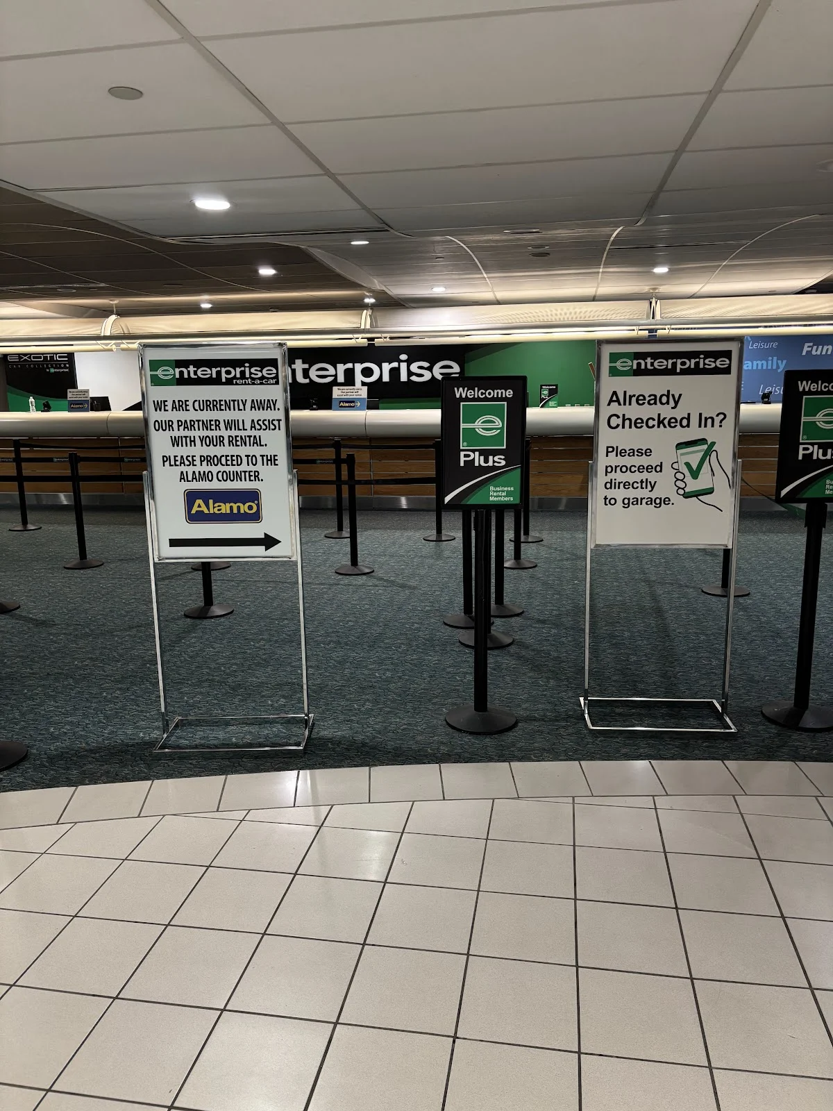 - Walking (Terminals A/B): From baggage claim, descend to Level 1 for the counters. After paperwork, follow signs to the attached parking garage (A‑Side or B‑Side). Covered walkways keep you out of the elements.